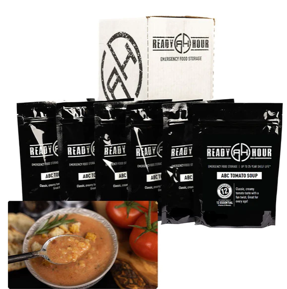 Our ABC Tomato Soup is fortified with essential vitamins and minerals for survival during emergencies. A single serving contains 25% of daily requirements for 12 vital vitamins and minerals.*