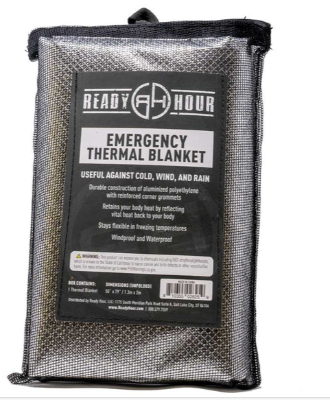 The Ready Hour Deluxe Thermal Blanket gives you instant shelter. It offers so much: a compact, soil-resistant ground cover; overhead shelter that’s wind and waterproof; or a multi-layered blanket that retains warmth by reflecting your body heat back at you.