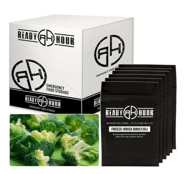 Ready Hour Freeze Dried Broccoli is an excellent addition to any food supply plan. Add it to your favorite casseroles, keep on hand for that last minute vegetable item should the need arise where you cannot get to a grocery store. There are so many uses for broccoli, you can garnish with it, pack a snack or serve as a side dish.